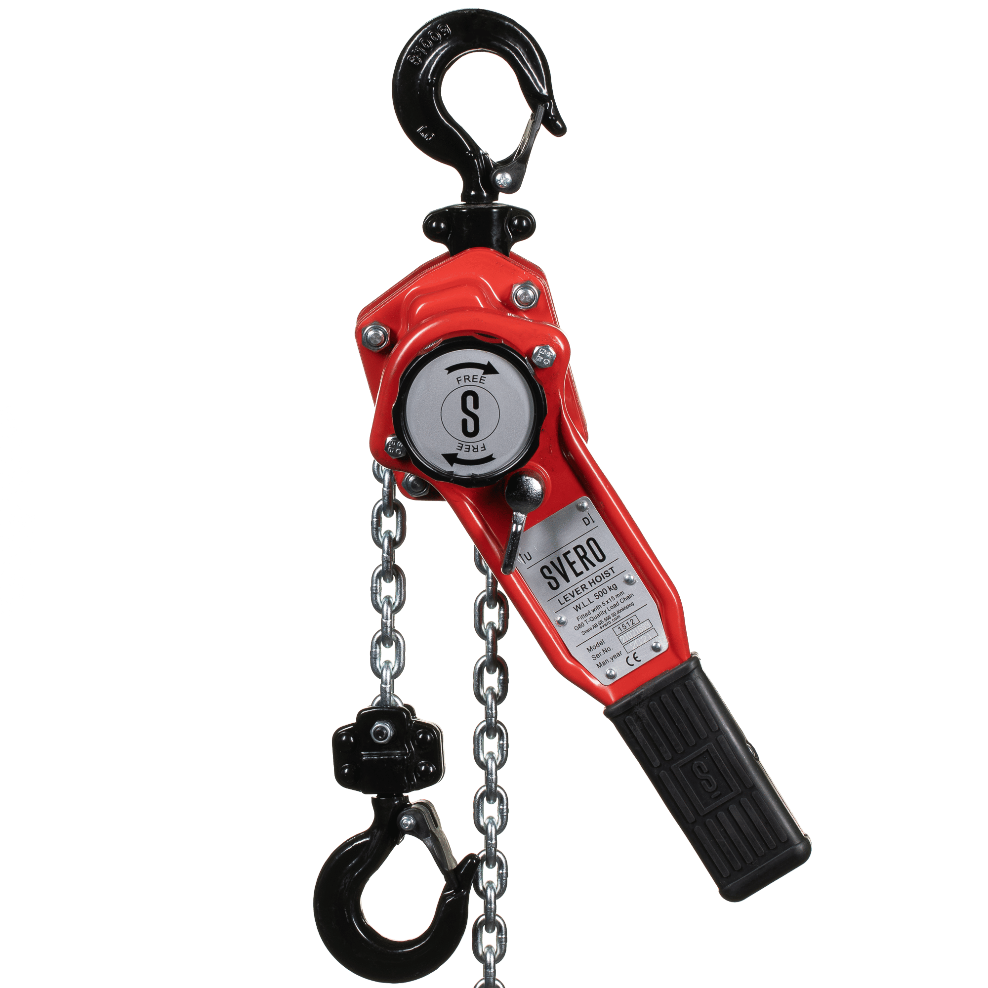 500 kg with overload protection is suitable for pulling and lifting in many situations. An all-round lever hoist from Svero for, for example, the smaller workshop or in the service car.