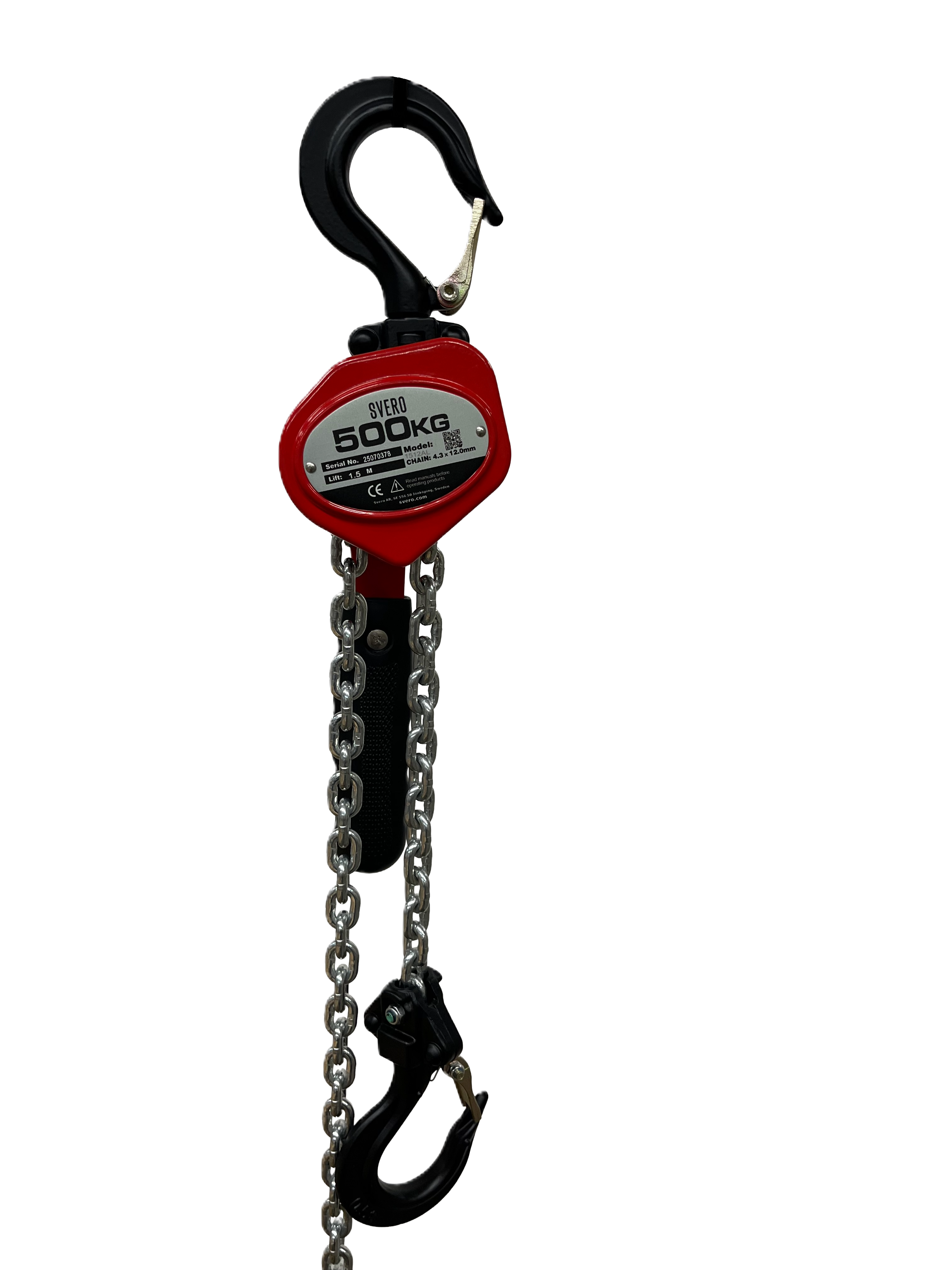 Our super light 500 kg Svero lever hoist made of aluminum. A 500 kg lever hoist that fits in the tool bag to take with you between different places where you need to lift, pull or tighten. Fits well in service, repair and maintenance.