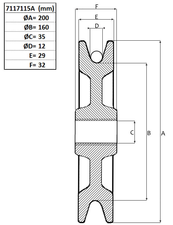 SVEROs ball bearing pulley wheel with Ø 200 mm. Weighs only 3.1 kg