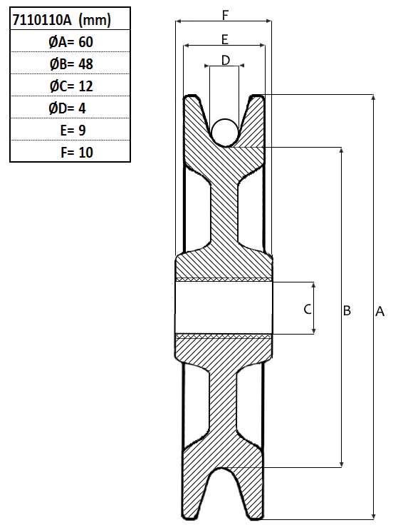 SVEROs plain bearing pulley wheel with Ø 60 mm. Weighs only 0.2 kg