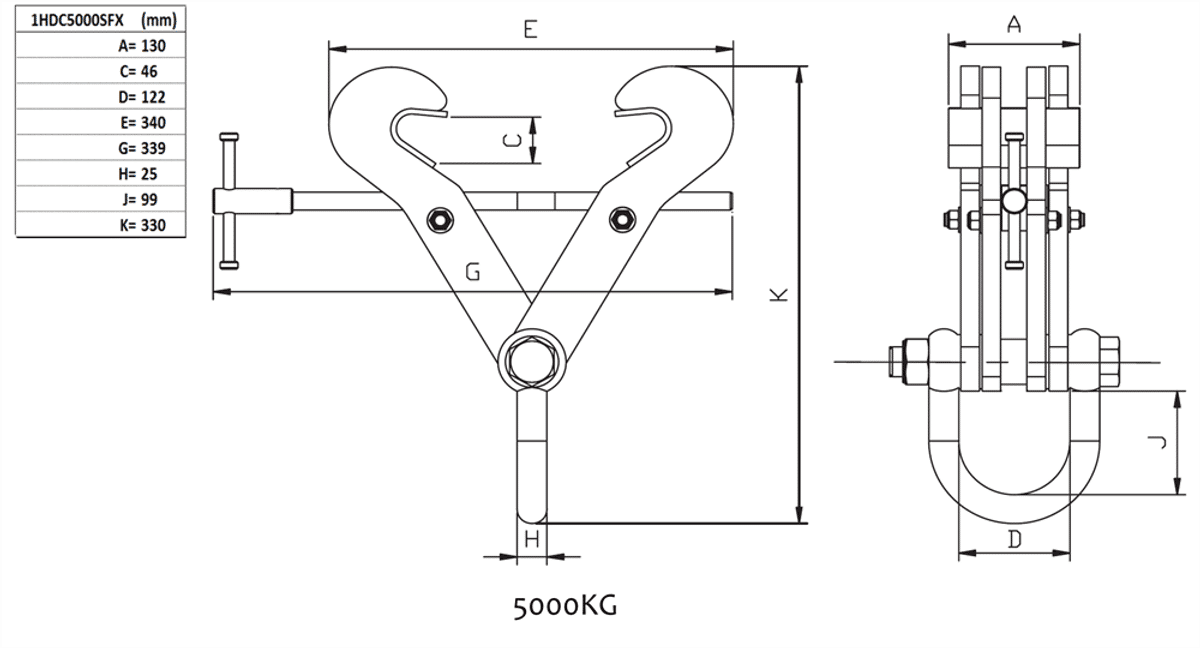 Balkklämma 5000 kg, fixerad gripklo