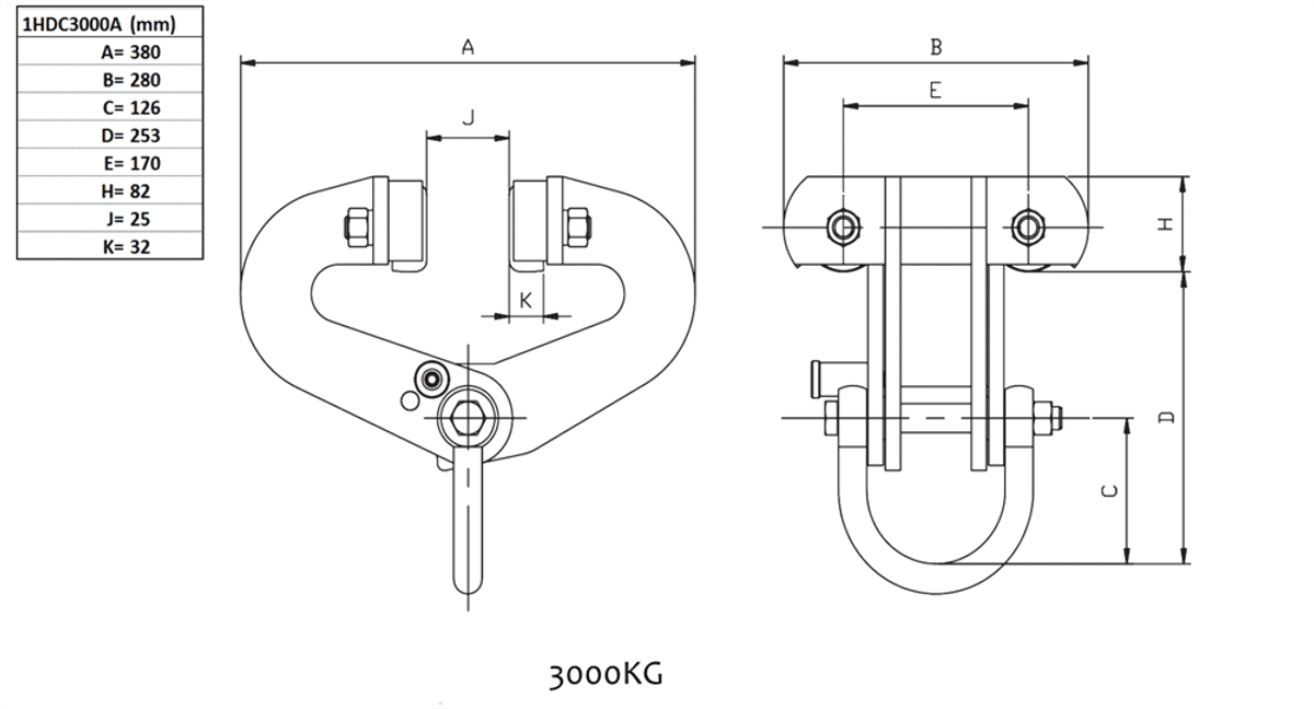 Balkklämma 3000 kg, självlåsande med hjul