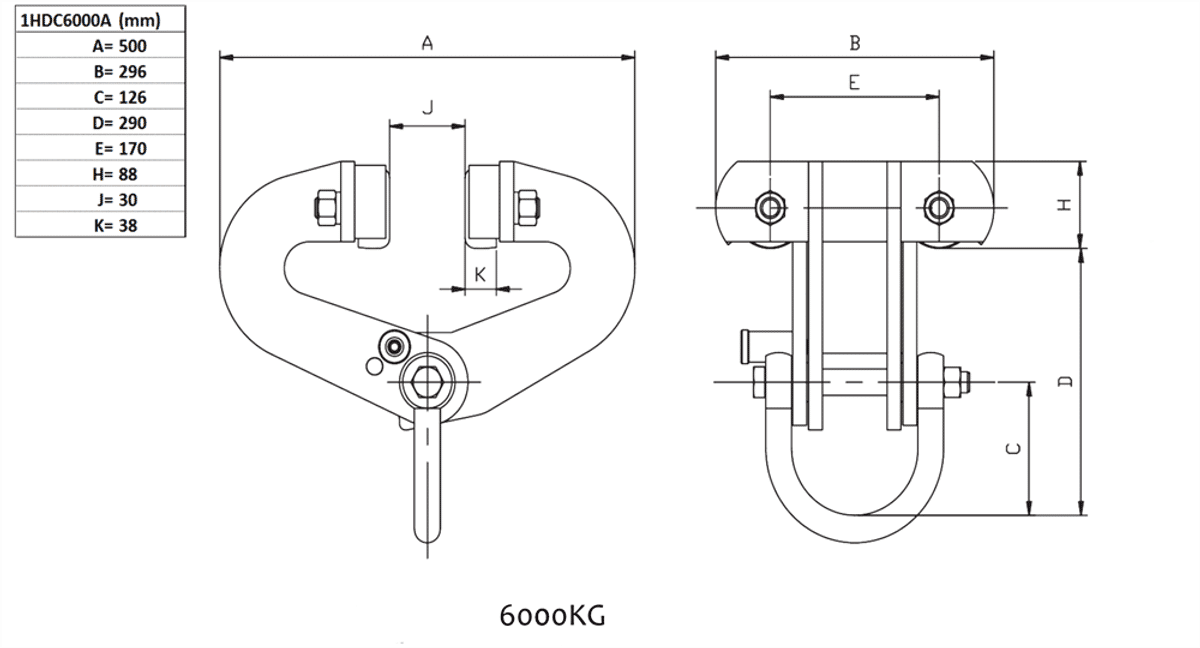Balkklämma 6000 kg, självlåsande med hjul