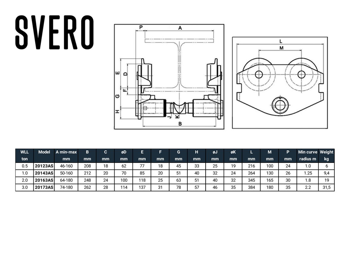 Blockvagn 2000 kg, 64-180 mm, rostfri
