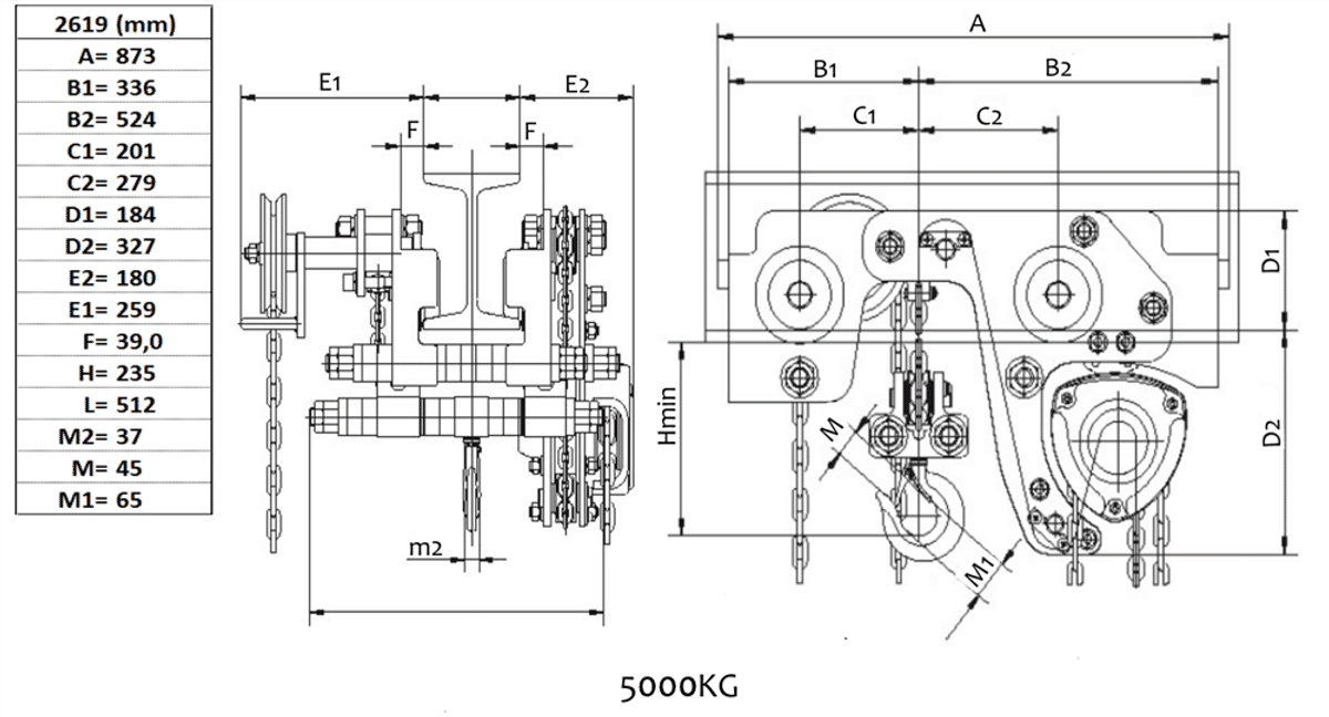 Integrerat lågbyggt lyftblock/balkvagn 5000 kg