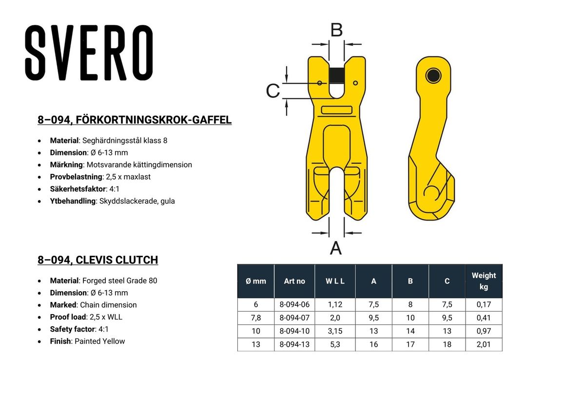 Förkortningskrok-Gaffel, 1120 kg, 6 mm