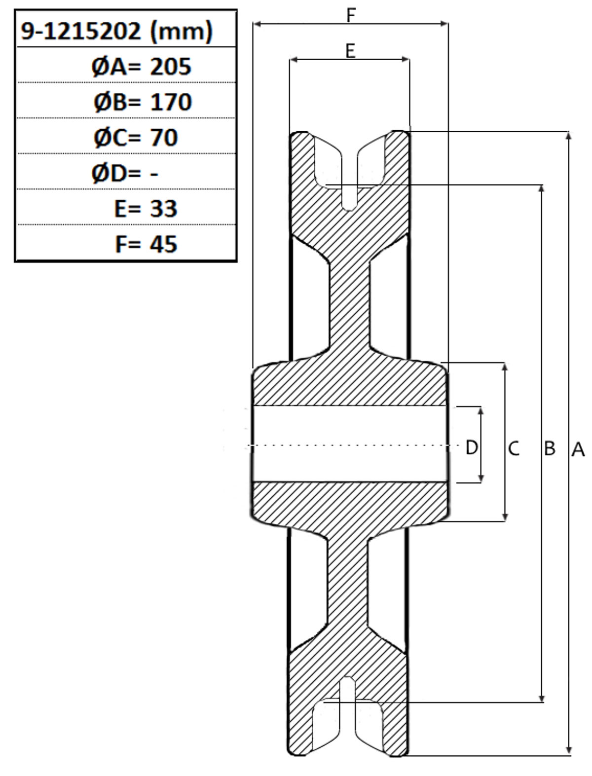 SVERO’s kättinghjul med Ø 205 mm. För kättingdimension 5 x 18,5 mm. Vikt 3,5 kg