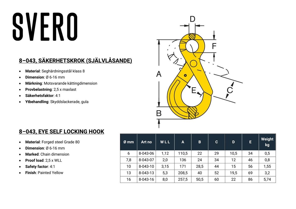 Säkerhetskrok-Öga, 3150 kg, 10 mm