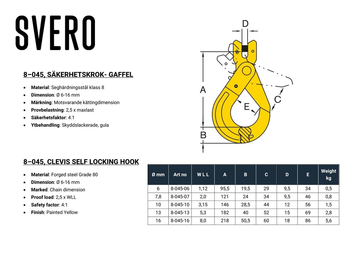 Säkerhetskrok-Gaffel, 5300 kg, 13 mm