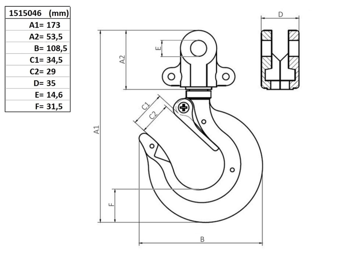 Toppkrok med spärr, 15, 1500 kg