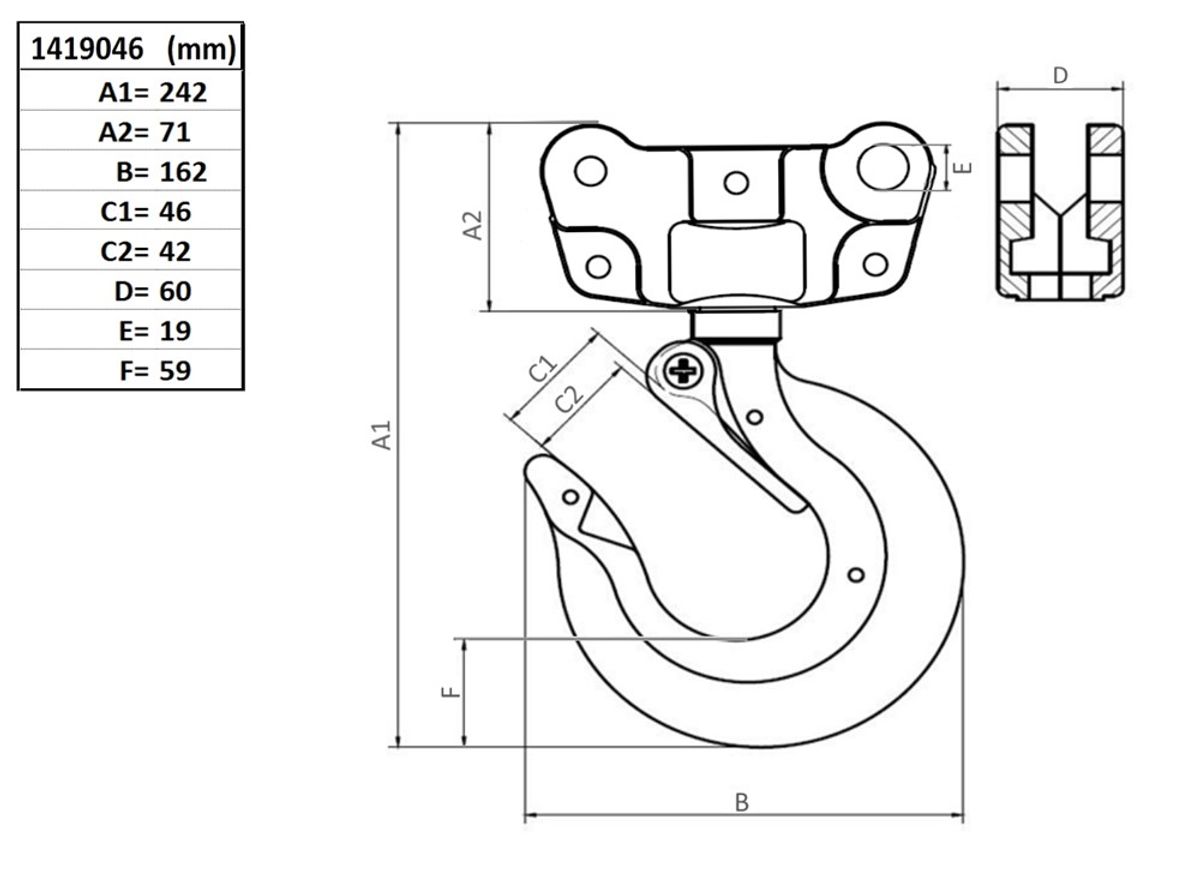 Toppkrok med spärr, 14, 5000 kg