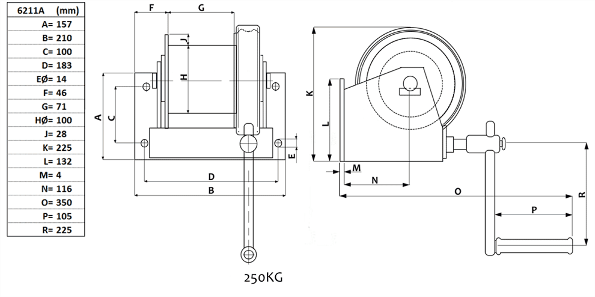 Väggvinsch 250 kg
