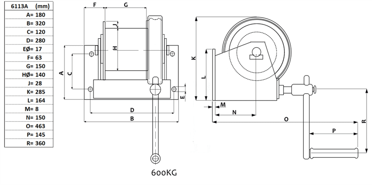 Väggvinsch 600 kg